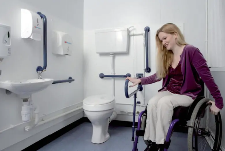 In the bathroom, the toilet must have enough space on one side to place the wheelchair and that it can move laterally until it can sit correctly.